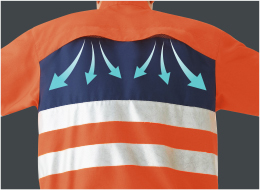 夜間作業の安全性を考慮して、腕、胸に反射材を採用。